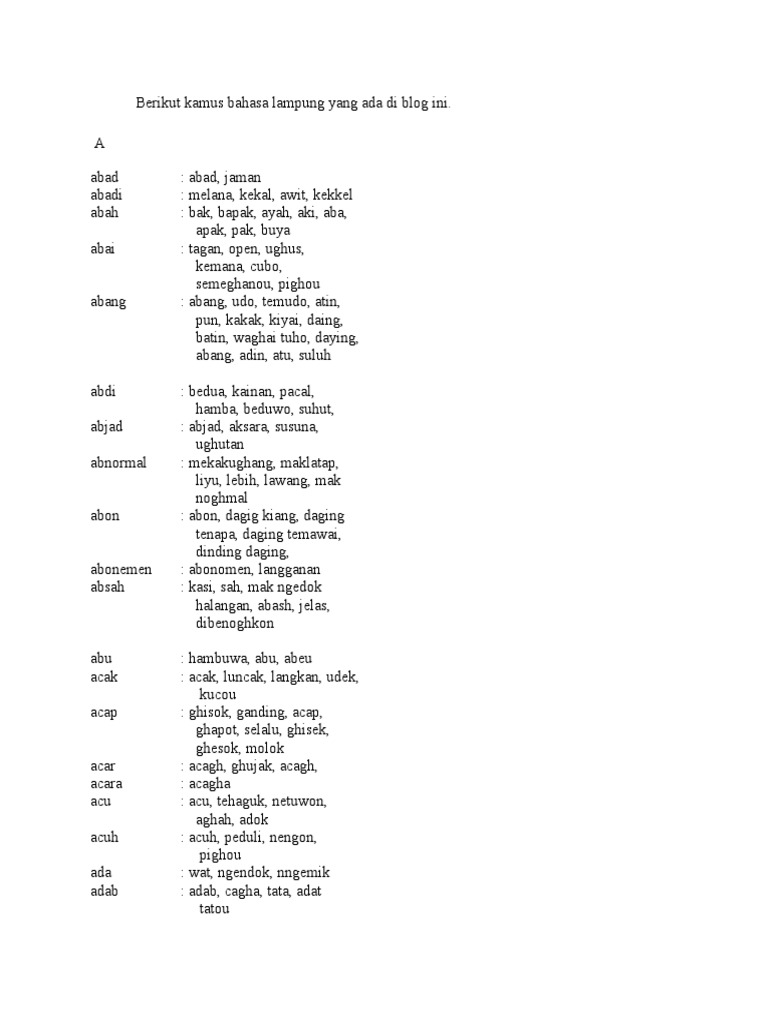 Berikut Kamus Bahasa Lampung Yang Ada Di Blog Ini Pdf
